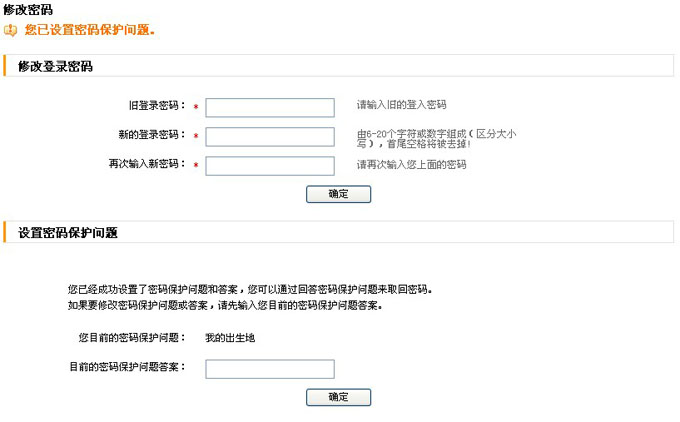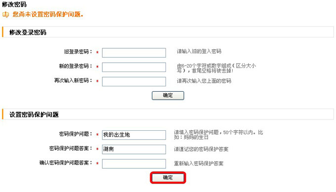 步骤二:进入修改密码页面,输入密码保护问题及答案,点击“确定”。